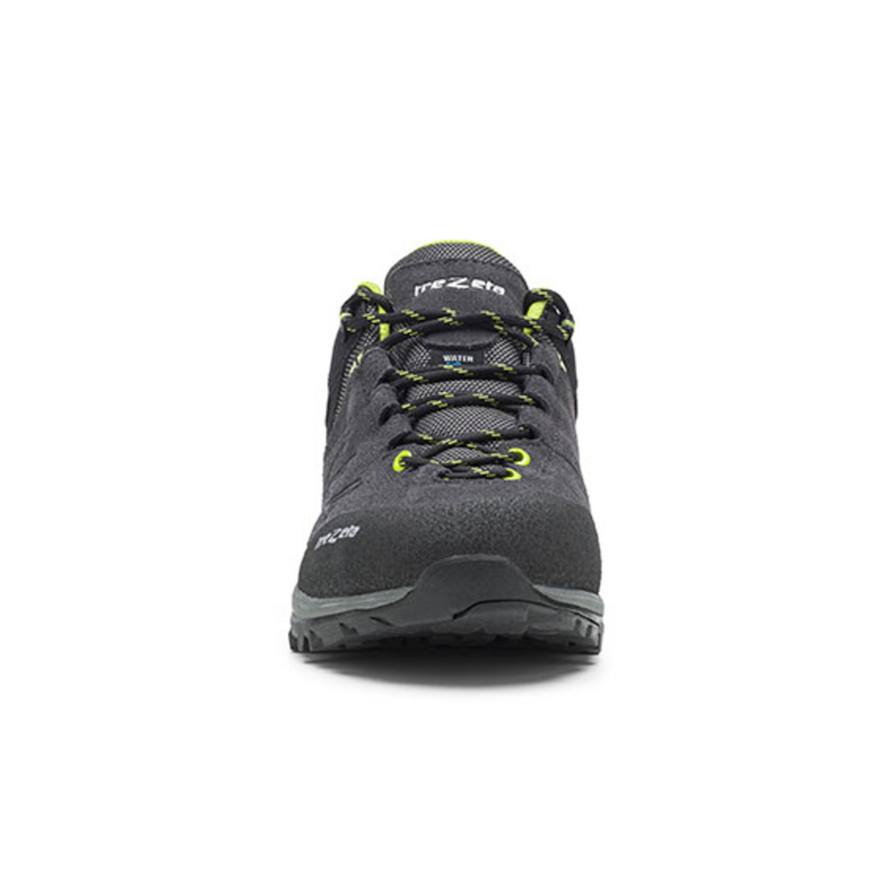 La morbida tomaia in suede waterproof e tessuto accoglie comodamente il piede, mentre la fodera traspirante in mesh agevola il comfort climatico ottimale all’interno della calzatura. Per proteggere con efficacia l’interno dalle intemperie, Trezeta ha sviluppato la tecnologia Trezeta Water Stopper, una membrana che impedisce agli elementi esterni di penetrare nella calzatura. Il puntale è protetto dalla tecnologia spray rubber, che isola la punta ed è stampata direttamente sulla tomaia. La suola Vibram® Multiland assicura la massima adattabilità al terreno, il battistrada è dotato di un’ampia zona di contatto nella parte anteriore per migliorare l’aderenza al suolo e i tasselli multitraction assicurano un ottimo grip su ogni tipo di terreno. L’allacciatura avanzata verso la punta del piede lo avvolge perfettamente adattandosi alla conformazione del collo.