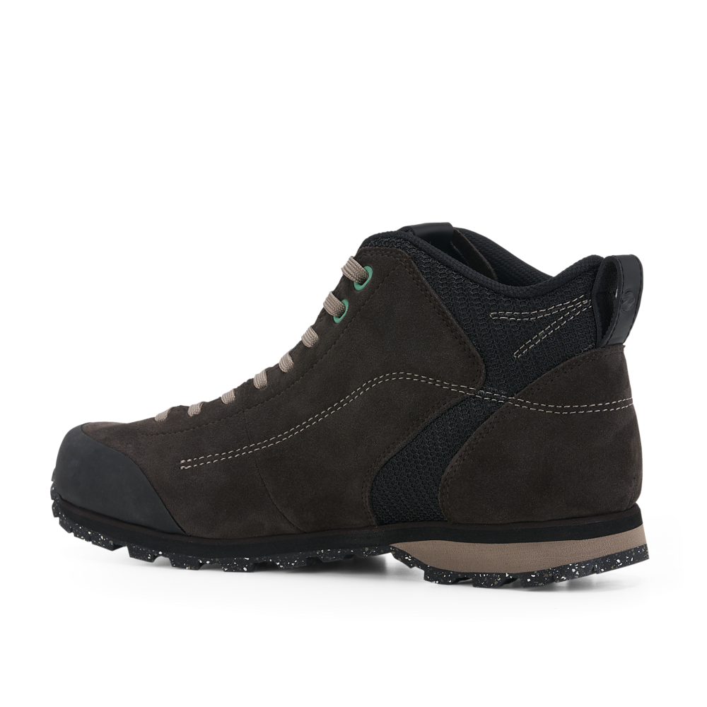 Un unico paio di scarpe può essere adatto a contesti così diversi? Certo! Il segreto è la qualità dei materiali che uniscono performance e stile in una calzatura multifunction, bella da vedere e piacevole da indossare sempre: senti il piacere di camminare in ogni momento. La tomaia in suede waterproof protegge il piede con un tocco di eleganza e ti assicura resistenza e impermeabilità grazie all’inserto laterale in mesh traspirante e alla membrana Trezeta Water Stopper. Vera chicca è la suola Vibram® Ecostep, con una mescola eco-friendly riciclata al 30% dai processi di lavorazione delle suole Vibram®. Il risultato è un battistrada di qualità, adatto all’uso prolungato in viaggio, all’aperto e nella vita di tutti i giorni, che facilita la naturale rullata del piede. Non c’è modo migliore per sentirsi connessi alla terra che camminare con passi sicuri, sapendo di aver fatto un favore all’ambiente. Zeta Mid WP è ideale per proteggere la caviglia ma anche per chi ama uno stile attuale. Alcuni dettagli di stile completano la calzatura: gli occhielli dalla colorazione abbinata alla fascia, linguetta e collarino in pelle che creano un contrasto cromatico, il disegno delle cuciture laterali, il logo punzonato e la particolare grana della suola. Le varianti colore rispecchiano lo spirito eclettico di chi è a proprio agio sia in città che in mezzo alla natura: toni naturali dallo stile casual ed eco-chic che si adattano a ogni outfit.