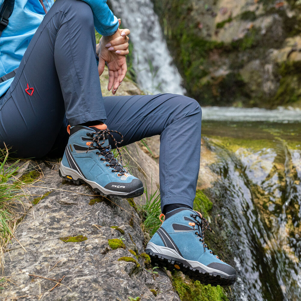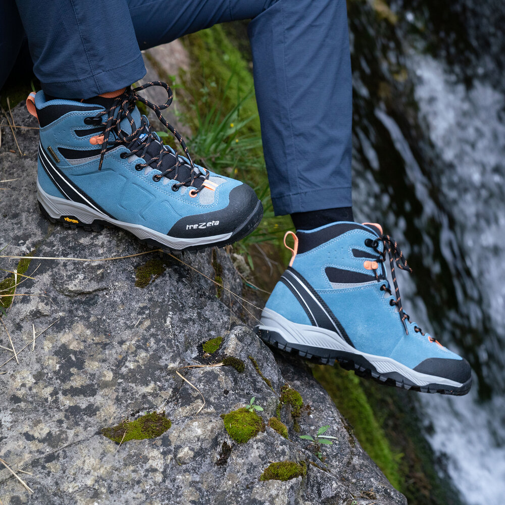 La morbida tomaia in suede waterproof e tessuto accoglie comodamente il piede, mentre la fodera traspirante in mesh agevola il comfort climatico ottimale all’interno della calzatura. Per proteggere con efficacia l’interno dalle intemperie, Trezeta ha sviluppato la tecnologia Trezeta Water Stopper, una membrana che impedisce agli elementi esterni di penetrare nella calzatura. Il puntale è protetto dalla tecnologia spray rubber, che isola la punta ed è stampata direttamente sulla tomaia. Piede asciutto e sempre protetto: l’intersuola in EVA a doppia densità ammortizza l’appoggio per ridurre gli impatti al suolo, minimizzare le vibrazioni e accompagnare il passo. La suola Vibram® Inverness è dotata di un’ampia zona di appoggio per la massima stabilità, con tassellatura aperta e autopulente. La suola a profilo alto protegge il piede su terreni difficili.